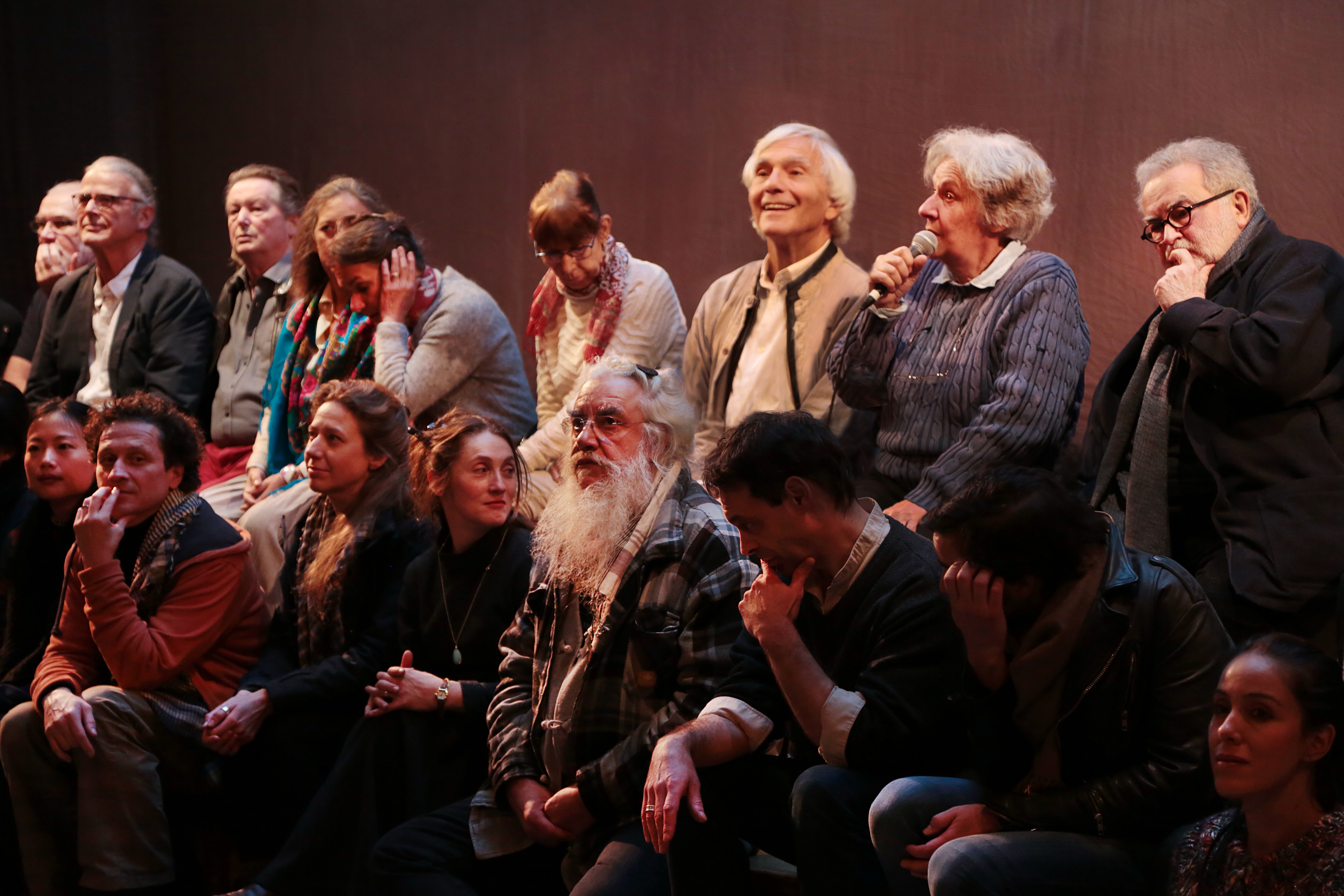 Eugenio Barba. –Je suis toujours très content, parce que je reçois le mérite des différentes initiatives, mais en réalité, c’est Julia Varley[1]et Charles-Henri Bradier[2]qui sont les « anges gardiens » pratiques de nos groupes, et ils ont pensé fêter les cent ans de nos deux troupes. En 1964, Ariane, ici à Paris et moi en Norvège, nous avons fondé ces deux groupes qui ont eu la chance et aussi la persévérance de rester en vie depuis 52 ans maintenant. Nous devions faire une grande fête en 2014, et nous avions dû l’ajourner. Alors, à l’occasion de notre venue ici, Julia et Charles-Henri ont dit « Nous allons réunir Ariane et Eugenio avec tous les acteurs », et on m’a demandé un titre. J’ai réfléchi, j’étais très fatigué ce jour-là, et j’ai dit : « Ah oui, la fatigue de travailler dans un groupe de théâtre »… Mais on ne pouvait pas présenter les choses ainsi ; il faut toujours utiliser la dialectique, alors j’ai pensé : le prix. Oui, le prix, dans un double sens, c’est-à-dire : avoir tellement de personnes qui nous offrent, nous donnent de leur temps et viennent ici pour écouter les acteurs et les metteurs en scène ce soir ; mais aussi le prix, vraiment, la fatigue, l’acharnement, le désir parfois de s’entredéchirer, de foutre à la porte les meilleurs collaborateurs et inversement, parce que travailler en groupe est l’une des plus belles choses que je connaisse, mais aussi des plus “tarissantes”, des plus fatigantes… Mais pour éviter l’anarchie, et donner une espèce d’ordre à cette force qui est, au fond, la plus puissante dans la dynamique de groupe, j’ai demandé à Georges Banu, un vieil ami du Soleil et de l’Odin, de guider cette rencontre.