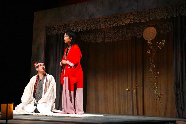 Charles-Henri Bradier qui signe là sa première mise en scène parvient avec économie et simplicité à nous plonger dans l'univers merveilleux du conte dont les ressorts dramaturgiques, à l'instar du théâtre populaire asiatique, sont soulignés par les interventions d'une percussion très présente. Concrètement, sur la scène, sont dressés les tréteaux d'un petit théâtre où se concentre l'action avec le lampion rouge et l'ombrelle chinoise pointant la couleur locale; de part et d'autre se tiennent les musiciens et le choeur qui commente l'action mais, plus encore, nous immerge dans un autre temps par le charme envoûtant de ses sonorités dépaysantes. Très étroitement liées aux timbres de la flûte et de l'alto surlignant les courbes mélodiques, les voix des personnages, altenant le parler et le chanter, empruntent les allures glissées de la langue asiatique dans une stylisation assez proche d'un Sciarrino mais adaptée ici au texte français. Aux côtés du ténor Éric Raffard - le prince - et de la basse Hubert Deny - le roi - très investis dans leur rôle respectif, la soprano japonaise Kaoli Isshiki rayonne dans le rôle de la princesse, conciliant à merveille toutes les composantes esthétiques de l'écriture vocale par la sensualité orientale de son timbre, la rondeur de ses aigus et une diction irréprochable. À la tête de l'ensemble, aussi discret qu'efficace, Roland Hayrabédian, maître d'œuvre d'un spectacle minutieusement réglé, contribue à faire de ce conte musical "une chose unique et mystérieuse".