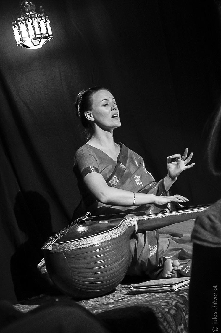À la suite de la représentation d’Une Chambre en Inde, un concert exceptionnel par Emmanuelle Martin que nous souhaitons par là remercier de son patient accompagnement tout au long de nos répétitions, accompagnée par Venkat Krishnan au mridangam (percussions).