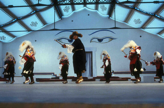 Voilà que ce Théâtre, celui-ci, (ou bien un autre), ne fait plus de théâtre, on n'y pense même plus. Il y a urgence : la menace de mort, d'exil, d'anéantissement qui accompagne le peuple tibétain, est venue camper chez nous. L'imminence nous mobilise. Soudain nous avons sous les yeux la peine de tout un peuple qui jusqu'à hier se tenait à des milliers de kilomètres de notre attention. Aussitôt tous les rôles font une révolution sur eux-mêmes : le théâtre n'est plus le lieu des représentations. Le voilà qui devient la maison du présent. Et quel présent ! Un présent tendu, fragile, menacé d'une interruption mortelle.